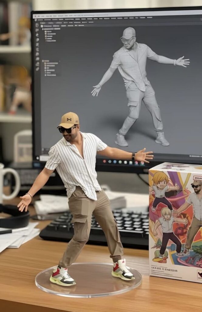 Prompt : “Create a hyper-realistic movie theatre outdoor featuring a massive 300-foot tall full-body cutout of the uploaded person, showing the entire figure from head to toe with lifelike detail and clarity.